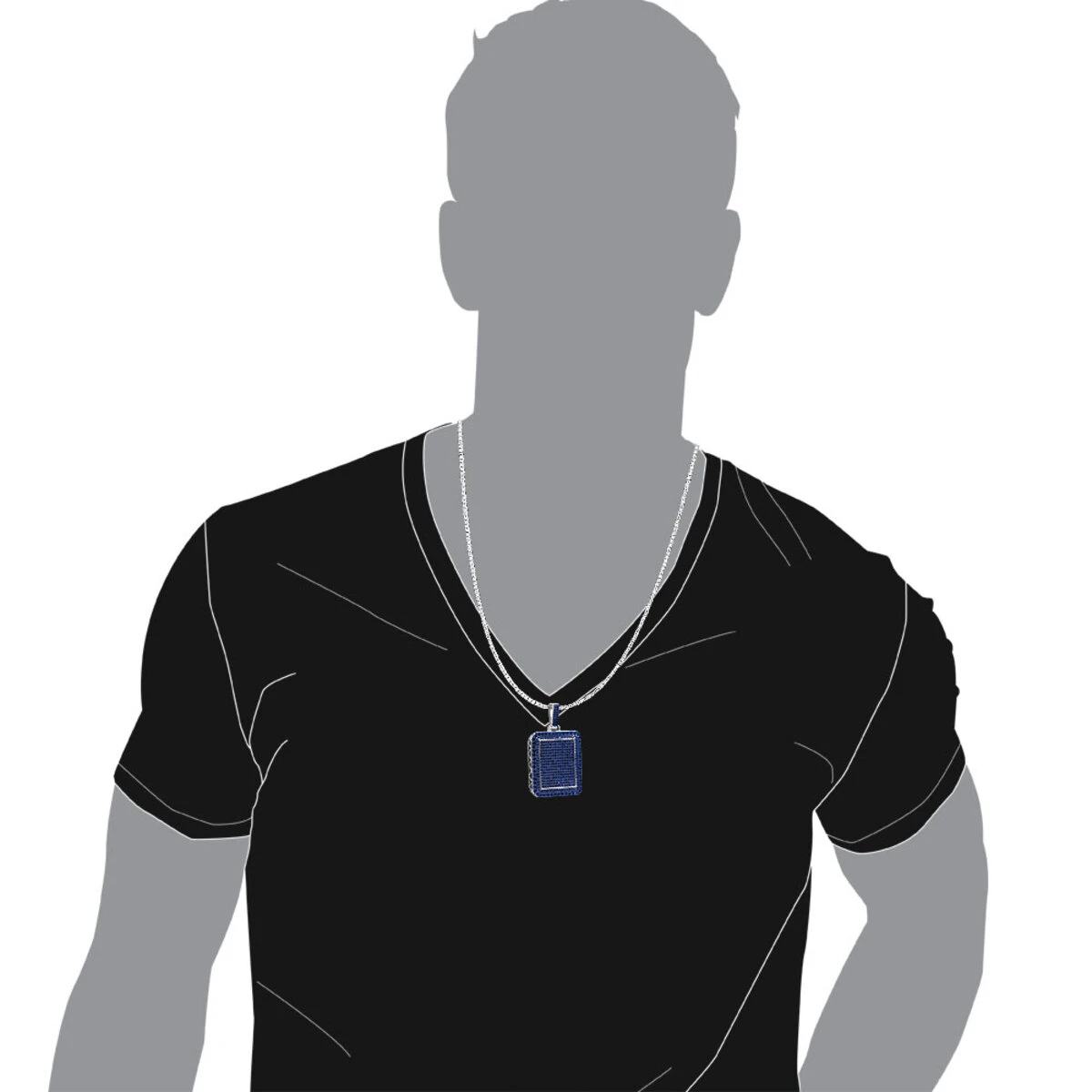 Unique Large 8 Carat Blue Diamonds 14K White Gold Dog Tag Pendant For Men