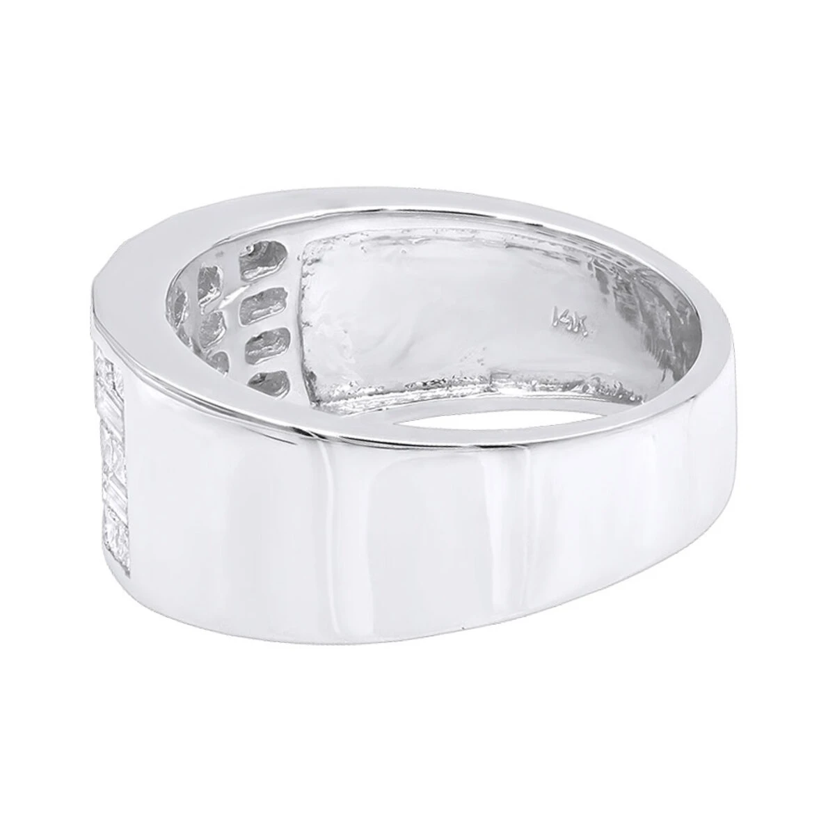 From our men’s diamond rings and diamond wedding bands collection This stunning 14K Gold Men’s Diamond Ring with Invisible Set princess cut and baguette diamonds (a very unique combination of diamonds) by LUXURMAN makes a very unique diamond wedding band but also can be worn as a pinky ring. This amazing ring is nearly half an inch wide (11mm) and showcases nearly 3 carats of dazzling hand-picked diamonds. Featuring a luxurious look and a highly polished gold finish, unique diamond ring for men is available in 14K white, yellow and rose gold and can also be custom made in 18k gold and Platinum.