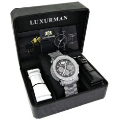 Designer Large Luxurman Phantom Real Diamond Watch For Men 0.12ct