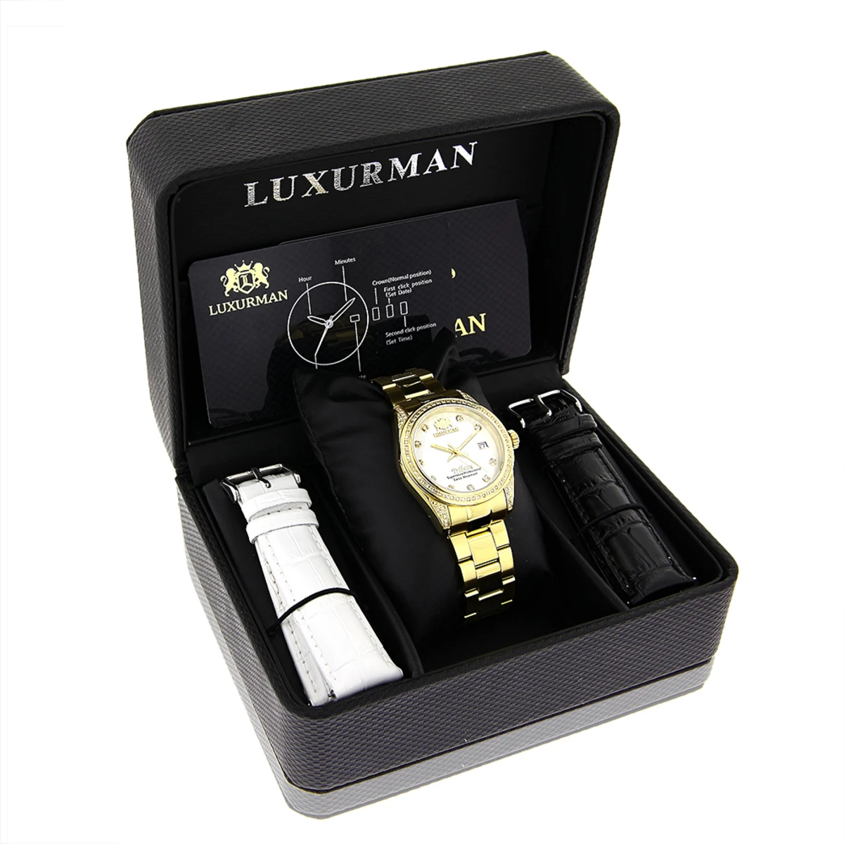 Women’s Diamond Watch Yellow Gold Plated Luxurman Tribeca 1.5ct