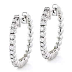 Small Inside Out Diamond Hoop Earrings 1.16ct 14K White Gold
