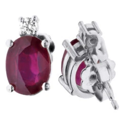 VS Diamond And Oval Ruby Stud Earrings For Women 18K Yellow Gold 3.74ct