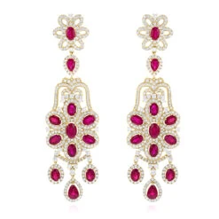 14K White Gold Designer Chandelier Ruby Diamond Earrings By Luxurman