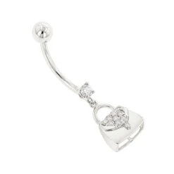 14K White Gold Genuine Diamond Playboy Bunny Belly Button Ring 1.06ct