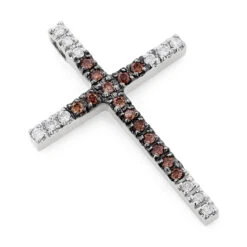14K Yellow Gold White And Brown Diamond Cross Pendant 0.86ct