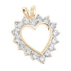 14K Yellow Gold Iced Out Dripping Heart Diamond Pendant For Women 1.3ct