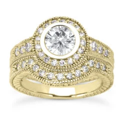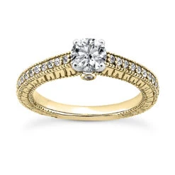 14K Yellow Gold Prong Set Diamond Designer Engagement Ring 1.06ct