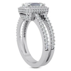 Handmade 14K White Gold Diamond Designer Engagement Ring Set 2ct